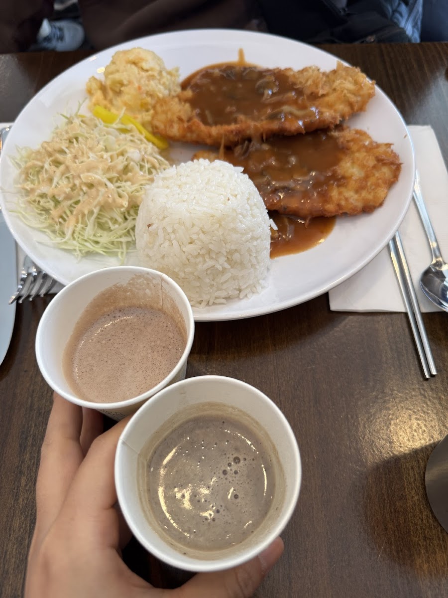 From the moment you step in, it’s like stepping back in time to an old-school Korean diner. The interior design is absolutely immaculate. It gets a little small and cramped but it’s super homely. The food was also honestly perfect and the right portions. They offer free refills of three side dishes but I didn’t even need it, as I left feeling very full and satisfied. The service was also great and the staff were very friendly. The little black bean latte at the end was also a great touch! As a Korean person, the food really hit the spot and I felt right at home. My only complaint is that it does run quite expensive for almost 40 per person including tax. However, I do feel like I got my money’s worth from the food and overall experience! Also: we got there at a good time almost right after it opened, but the restaurant fills up very fast. Be aware that it’s quite a busy spot especially since it’s small and limited seating.